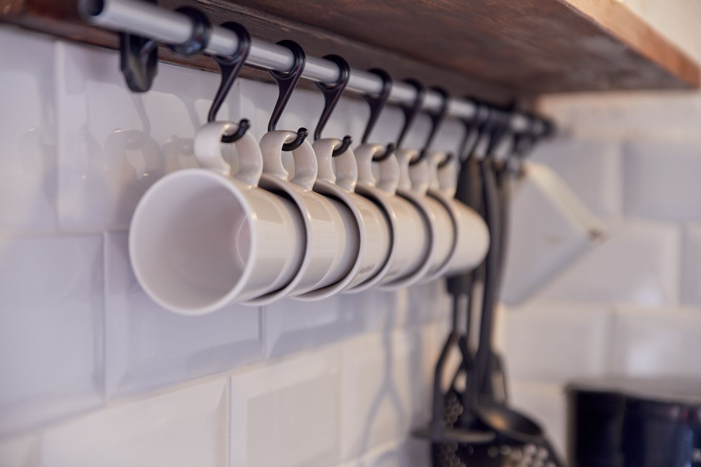 Die Küche mit angrenzende Essbereich mit Esstisch lädt zu gemeinsamen Mahlzeiten ein. Das Kochfeld, einen Kühlschrank mit Gefrierfach, Spüle, Toaster, Wasserkocher, Kaffeemaschine sowie Gläser, Geschirr, Besteck und alle notwendigen Küchenutensilien für die Selbstversorgung sind vorhanden.